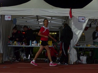 Als die Sonne am Untergehen war, beschlossen wir, dass wir, jeder für sich zumindest mal die 100km fertigmachen würden. Für Günter war es das dann auch leider, es ging ihm Trotz kühlerer Temperatur nicht besser und er musste das Rennen nach 100 km beenden. Ich jedoch fing an zu laufen, und laufen und laufen ..... in den Sonnenuntergang, durch die immer kühler werdende Nacht. Als ich müde wurde, begann ich mit meinen Beinen zu verhandeln :) lange ging das "ok, wir laufen 3 Runden, dann dürft Ihr eine Runde gehen" sehr gut, bis es auf 2 Runden Laufen und 1 Runde gehen zurückgeschraubt wurde.