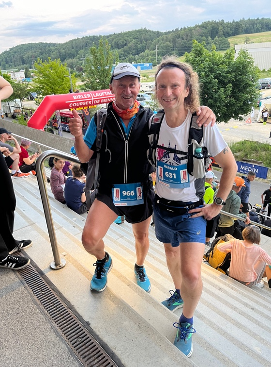Bist du deppat! So schwere Oberschenkel hatte ich schon sehr lange nicht mehr nach einem Lauf. Noch dazu musste man nach der Ziellinie noch ca. 30 Stufen raufsteigen, um seine Sachen von der Garderobe zu holen bzw. zu duschen. Aber es war ja auch nicht irgendein Laufevent, sondern die 65. Auflage der 100 Kilometer von Biel in der Westschweiz.